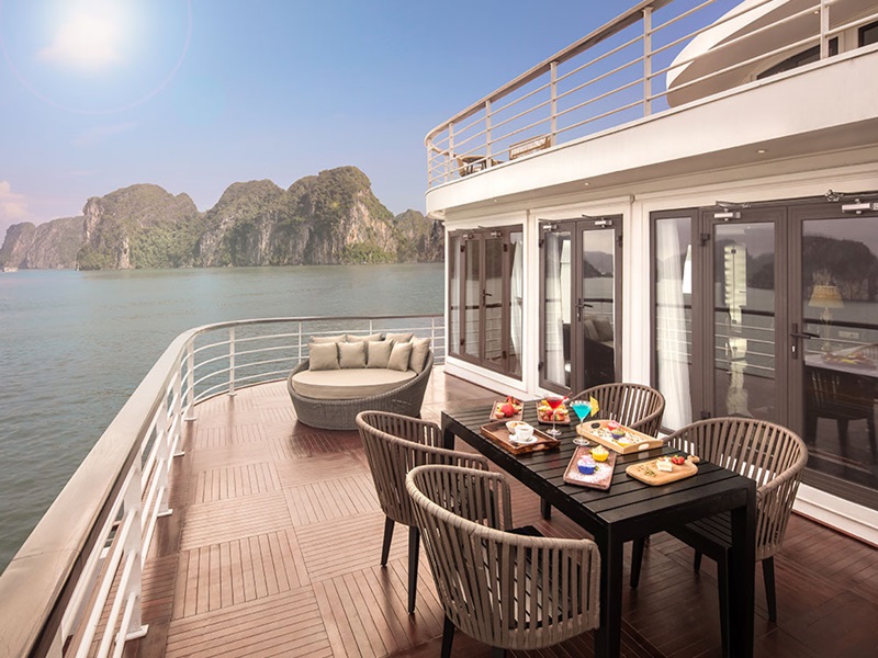 Experience Halong Bay in unparalleled luxury with our Ambassador Experience. This is more than just a cruise; it's an experience par excellence. As the largest Halong Bay cruise ship glides through the world's most magnificent seascape, you'll enjoy a meticulously crafted Halong Bay 1 Day Itinerary, complete with various forms of onboard entertainment, your own private butler, and the most generous cabins found anywhere in Halong Bay.