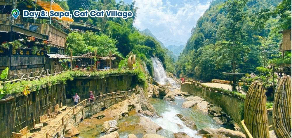 14.30: A short walk to the gate of Cat Cat village, which is the home of Black H’mong ethnic people and is located near the bottom of a deep valley at the foot of Fansipan Peak. Our local guide will show you the daily life activities of the locals, trek down to the valley bottom to the waterfall where the French built a Hydraulic Power Station; stop for photos with the bridge and waterfall; then you will walk up hill for the bus to pick you up to get back to Sapa in the afternoon.