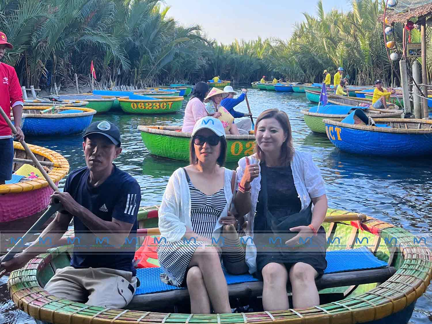 13:00: Continue your adventure with Cam Thanh Coconut Jungle and spend your time enjoying the peaceful, green space of Coconut Forest and hands-on experience of round net and cast net fishing, especially enjoying basket boat rowing.
