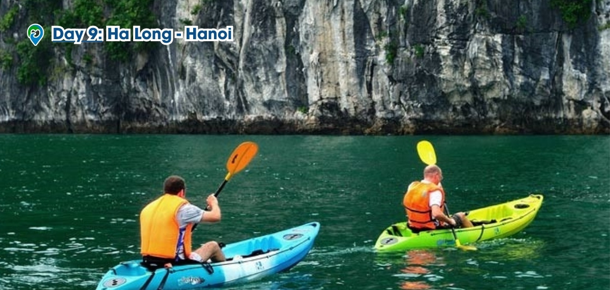 8:00 – 9.00 take a thrilling kayaking excursion to Luon Cave, a hidden gem nestled amidst towering limestone cliffs. Paddle through the tranquil waters of the cave's enclosed lagoon, surrounded by lush greenery and towering rock formations
